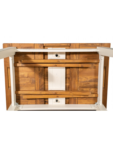 Maan laajennettava pöytä antiikkivahaisella valkoisella rakenteella pähkinäpäällä massiivikalkipuusta Valmistettu Italiassa