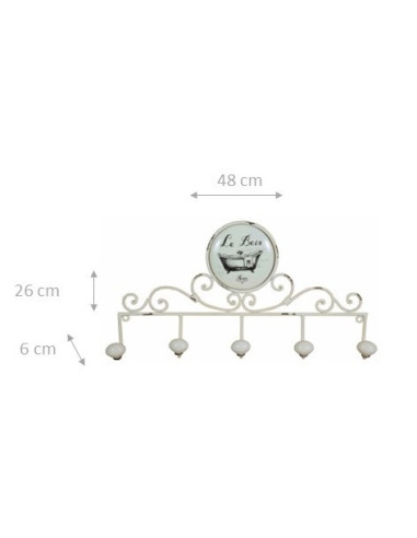 48x6x26 cm ripustin 5 takoraudasta valmistettua posliini nuppia koristeltu posliinilautasella "Le Bain"