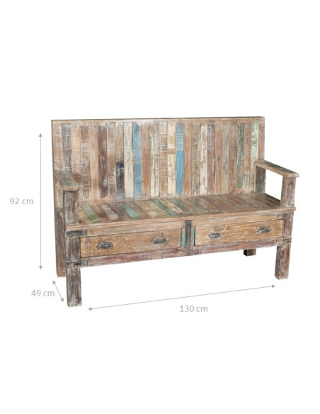Teakipuupenkki, jonka mitat ovat pituus 130 cm, syvyys 49 cm, korkeus 92 cm. Tällä penkillä on hienostunut marinoitu pastellisävy. Kompakti, erittäin vankka ja toimiva, tuloksena on huonekalu, jolla on tyylikäs estetiikka ja retro-maku, joka koristaa kodin kaikkein moderneimman tilan. Sitä voidaan käyttää myös rinnassa, penkissä.