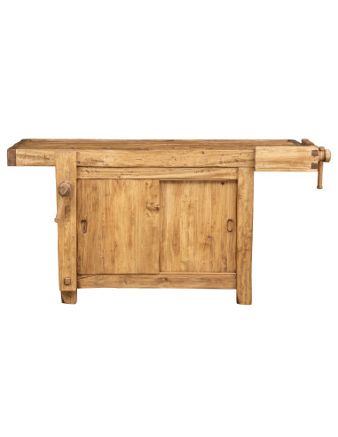 Työpenkki L184xPR74xH92 cm, kokonaan käsintehty kiinteästä kalkkipuusta. Taitavan ja tarkasti tehdyn Made in Italy -käsityön, kahden työpajan ja pienimpien yksityiskohtien huomioimisen ansiosta tiskki on uskollinen kopio vanhasta perinteisestä puusepän tiskistä. Kaksi isoa liukuovilla suljettua hyllyä on tiskki, joka on suunniteltu monipuoliseksi ja yksinoikeudeksi huonekaluksi, joka antaa alkuperäisyyttä kaikissa ympäristöissä.
