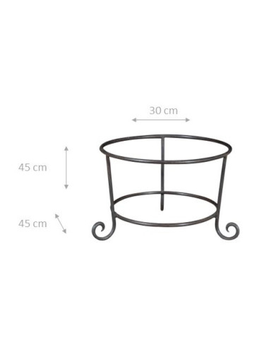 Pohja käsin taottua massiivista rautaa, pituus 30 cm, syvyys 45 cm, korkeus 45 cm. Erittäin vankka, monipuolinen ja ihanteellinen rakenne terrakotta-, kivi- tai marmorimaljakkojen tueksi. Voidaan käyttää sekä sisällä että ulkona. Sitä voidaan käyttää myös maljakkopidikkeenä, sohvapöydän pohjana.