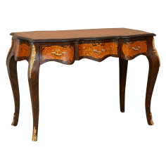 Erittäin muotoiltu kirjoituspöytä, jonka mitat ovat pituus 83 cm, syvyys 53 cm, korkeus 112 cm, todellinen käsityötaiteen ilmaus, johon vain harvat asiantuntijamyymälät pääsevät pääsemään. Todellinen mestariteos, jonka rakennetta rikastavat tarkat paneelit, jotka on hienosti koottu, jotta saadaan miellyttävä ajaton geometria. . Toiminnallinen esine, joka...