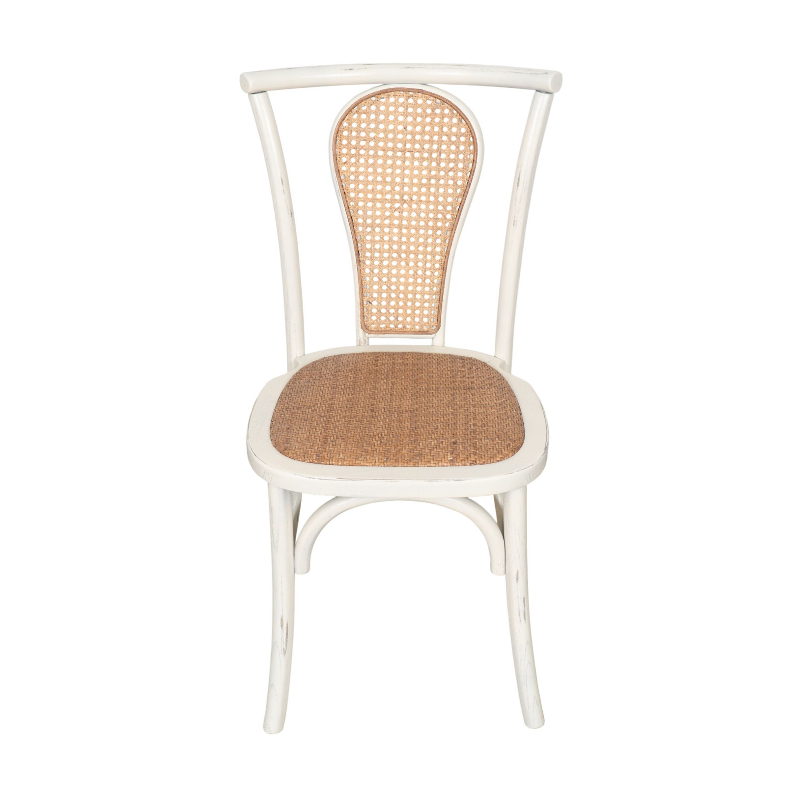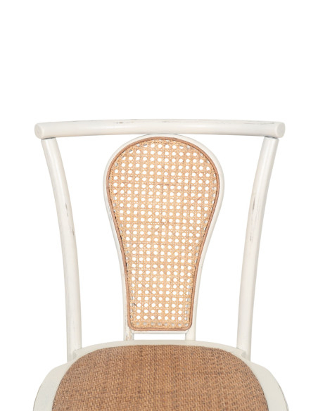 Massiivipuinen tuoli ja selkänoja valkoiseksi antiikkipinnoitetusta wieniläisestä oljesta