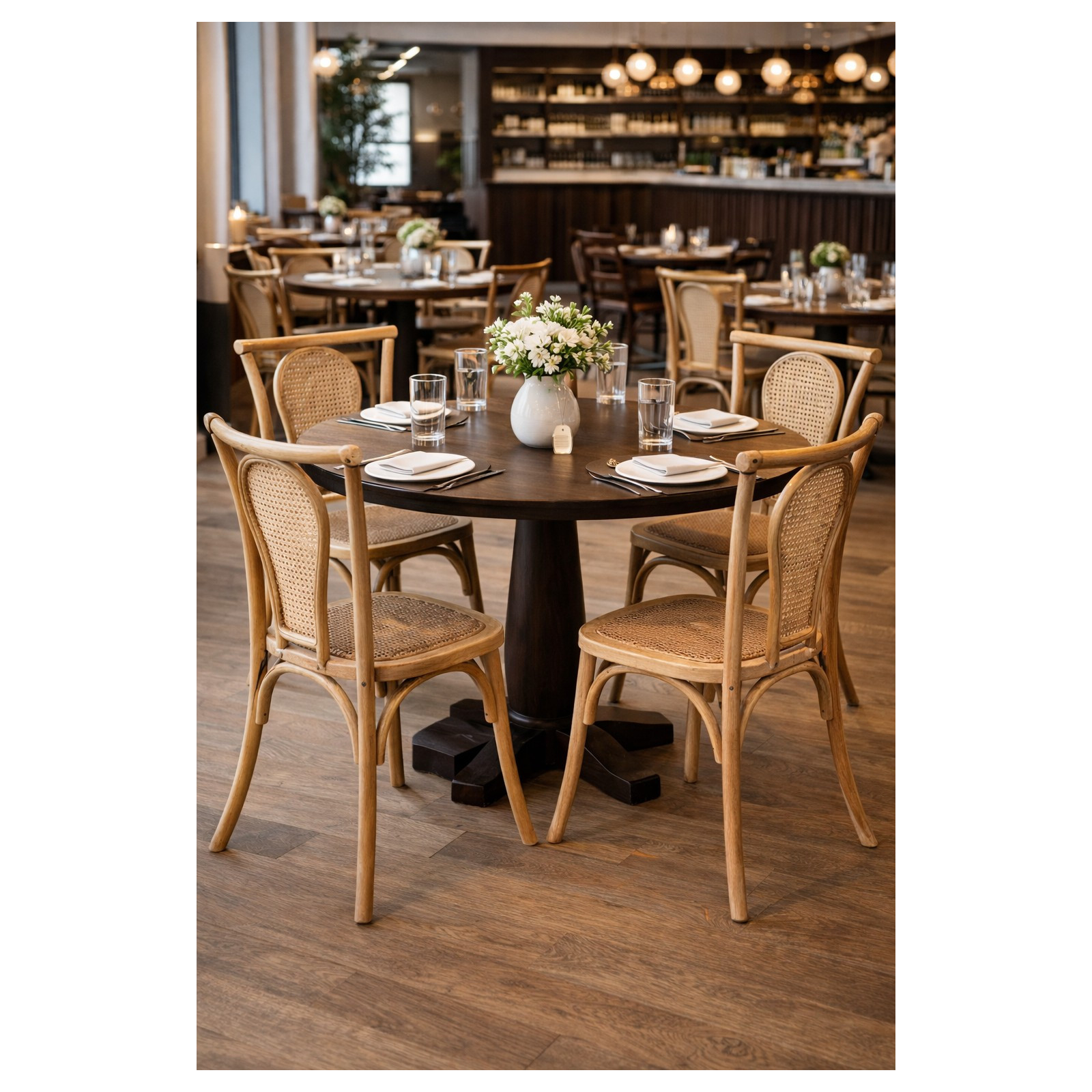 Massiivipuinen tuoli ja selkänoja Wienin oljesta, vaalea pähkinäpuun viimeistely