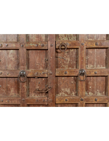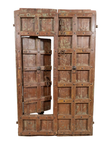Massiivipuusta ja raudasta valmistettu ovi sisä- tai ulkokäyttöön vanha keskiaikainen ovi