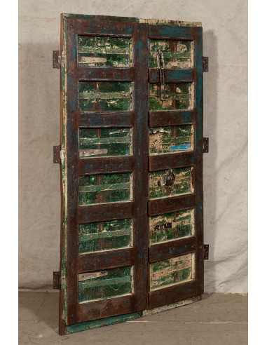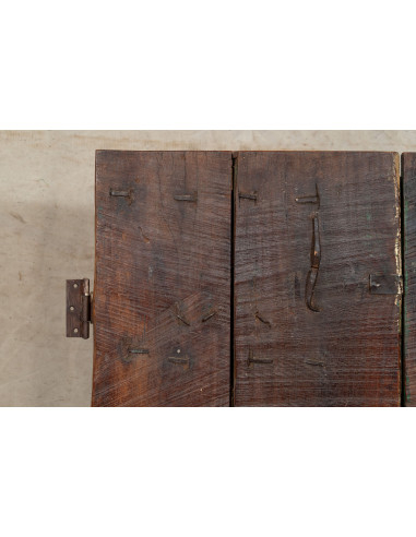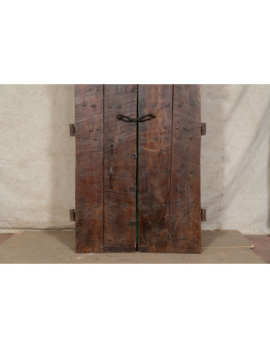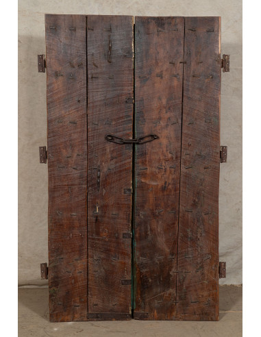 Antiikkinen ovi/portti, massiivinen tiikki, mitat 108 cm pitkä, 10 cm syvä, 184 cm korkea. Tämä ovi on peräisin tärkeiden vanhojen rakennusten purkamisesta ja restauroinnista. Hienosti restauroitu ja ulkokäyttöön käsitelty, jokainen ovi on pala aitoa ja ainutlaatuista antiikkia. Kaikki mitat viittaavat artikkelin suurimpiin kokonaismittoihin.