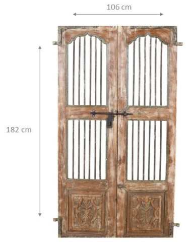 Vanha tiikkipuinen ovi/portti, jonka mitat ovat pituus 106 cm, syvyys 3 cm, korkeus 182 cm. Tämä ovi on peräisin vanhojen ja merkittävien rakennusten purkamisesta ja kunnostamisesta. Hienosti kunnostettu ja myös ulkokäyttöön sopivaksi käsitelty ovi on aito ja ainutlaatuinen antiikkiesine. Kaikki mitat viittaavat tuotteen suurimpiin mittoihin.