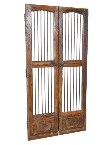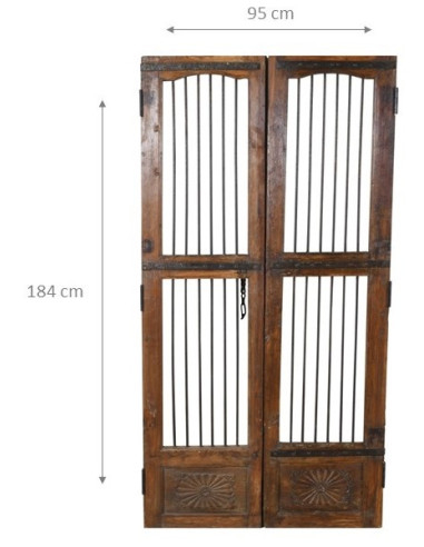 Vanha tiikkipuinen ovi/portti, jonka mitat ovat pituus 95 cm, syvyys 3 cm, korkeus 184 cm. Tämä ovi on peräisin vanhojen ja merkittävien rakennusten purkamisesta ja kunnostamisesta. Hienosti kunnostettu ja myös ulkokäyttöön sopivaksi käsitelty ovi on aito ja ainutlaatuinen antiikkiesine. Kaikki mitat viittaavat tuotteen suurimpiin mittoihin.