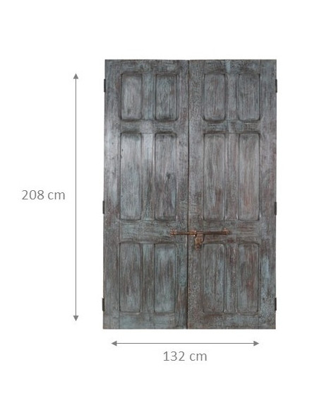 Vanha tiikkipuinen ovi/portti, jonka mitat ovat pituus 132 cm, syvyys 5 cm, korkeus 208 cm. Tämä ovi on peräisin vanhojen ja merkittävien rakennusten purkamisesta ja kunnostamisesta. Hienosti kunnostettu ja myös ulkokäyttöön sopivaksi käsitelty ovi on aito ja ainutlaatuinen antiikkiesine. Kaikki mitat viittaavat tuotteen suurimpiin mittoihin.