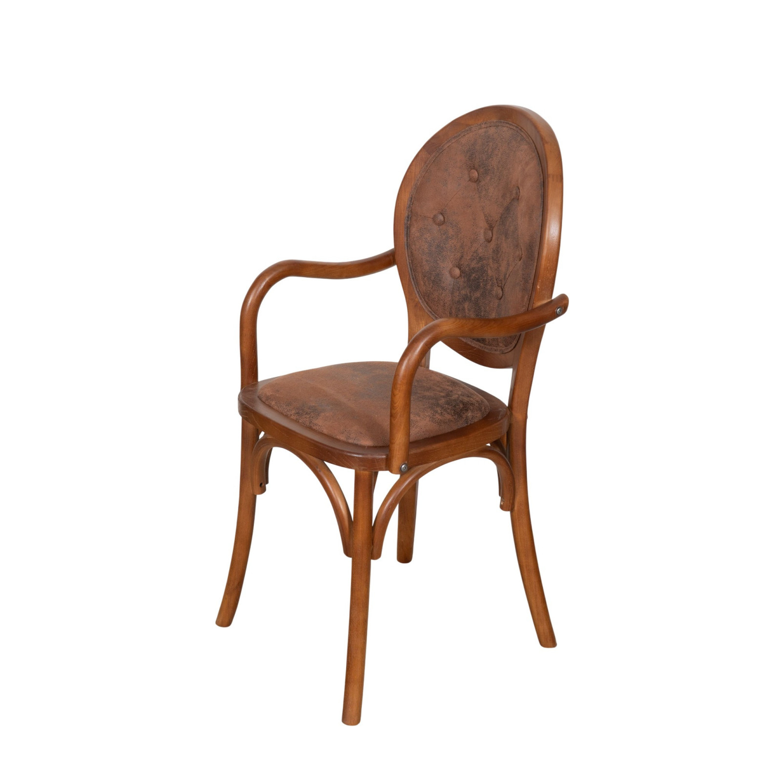 Massiivipuutuoli käsinojilla ja pehmustetulla istuimella, tumma pähkinäviimeistely