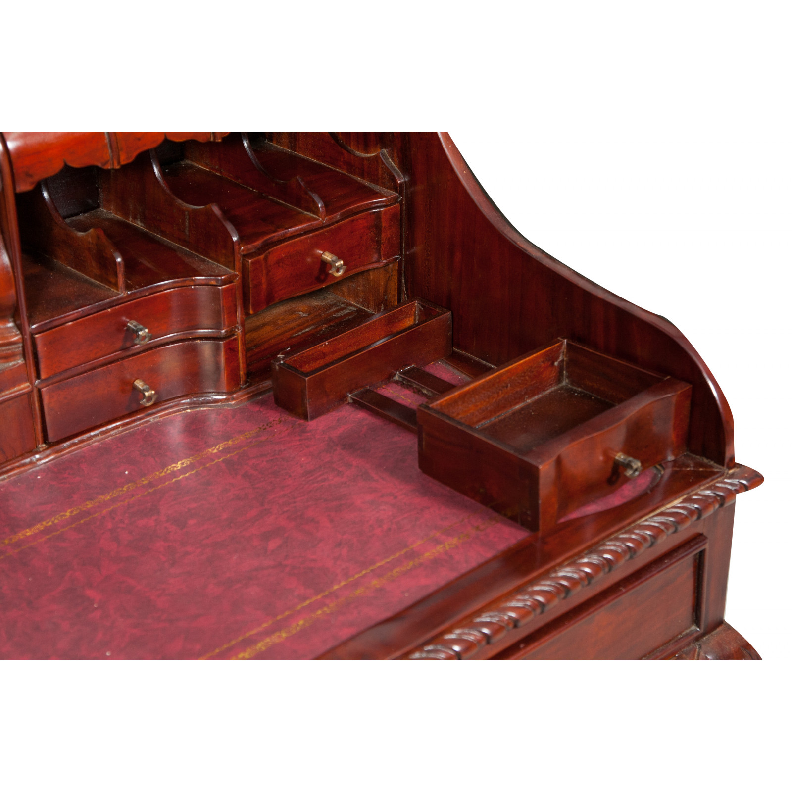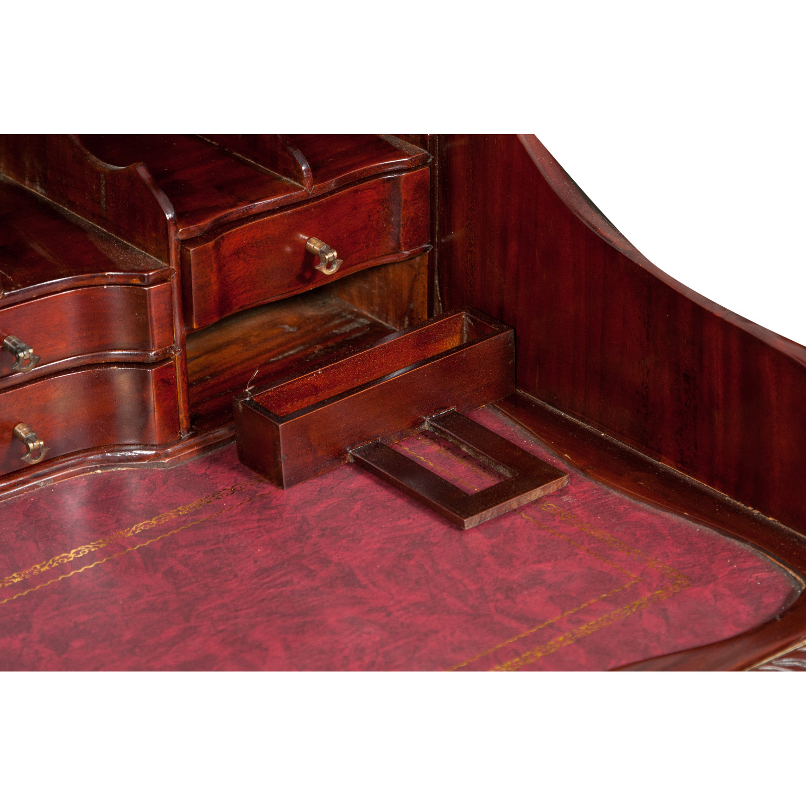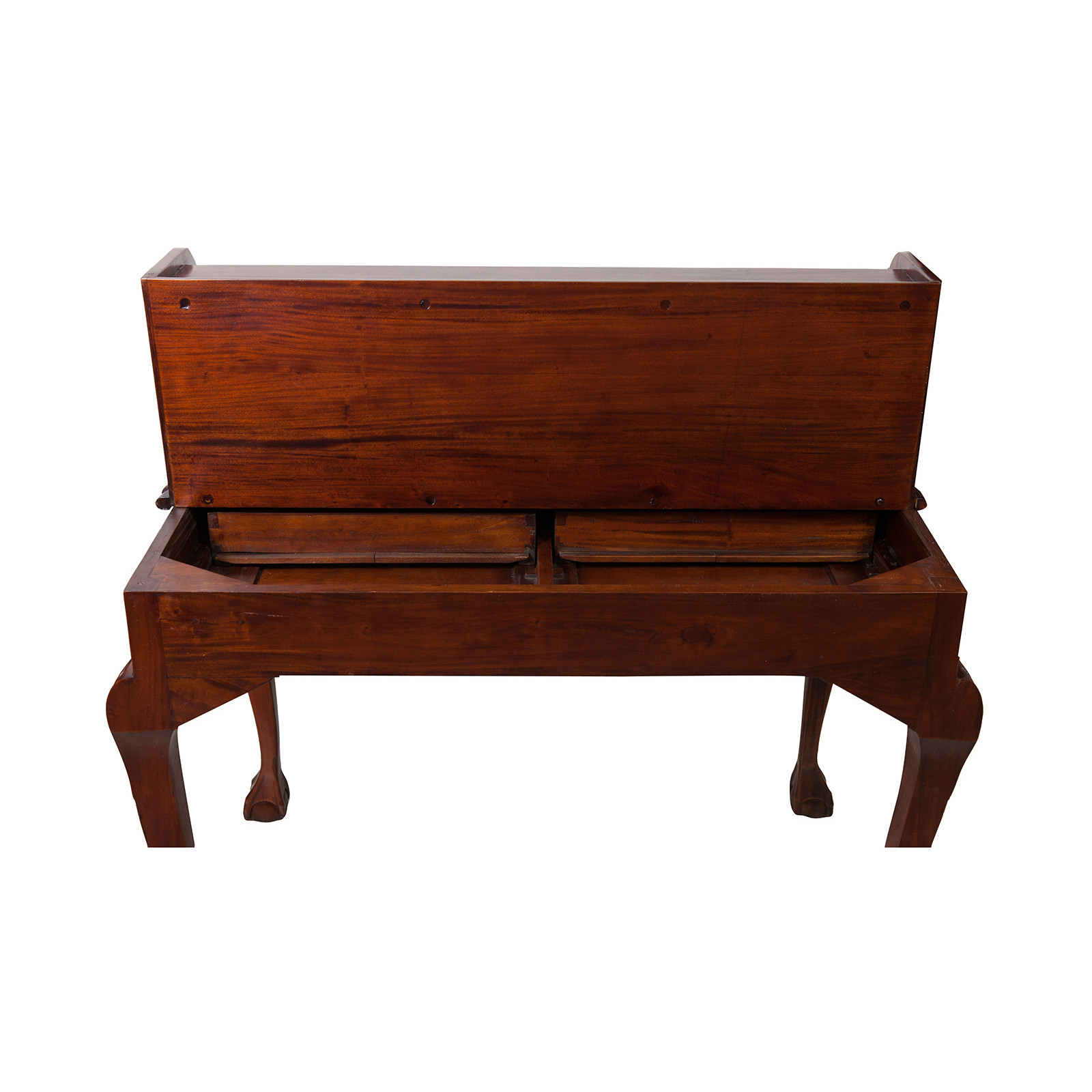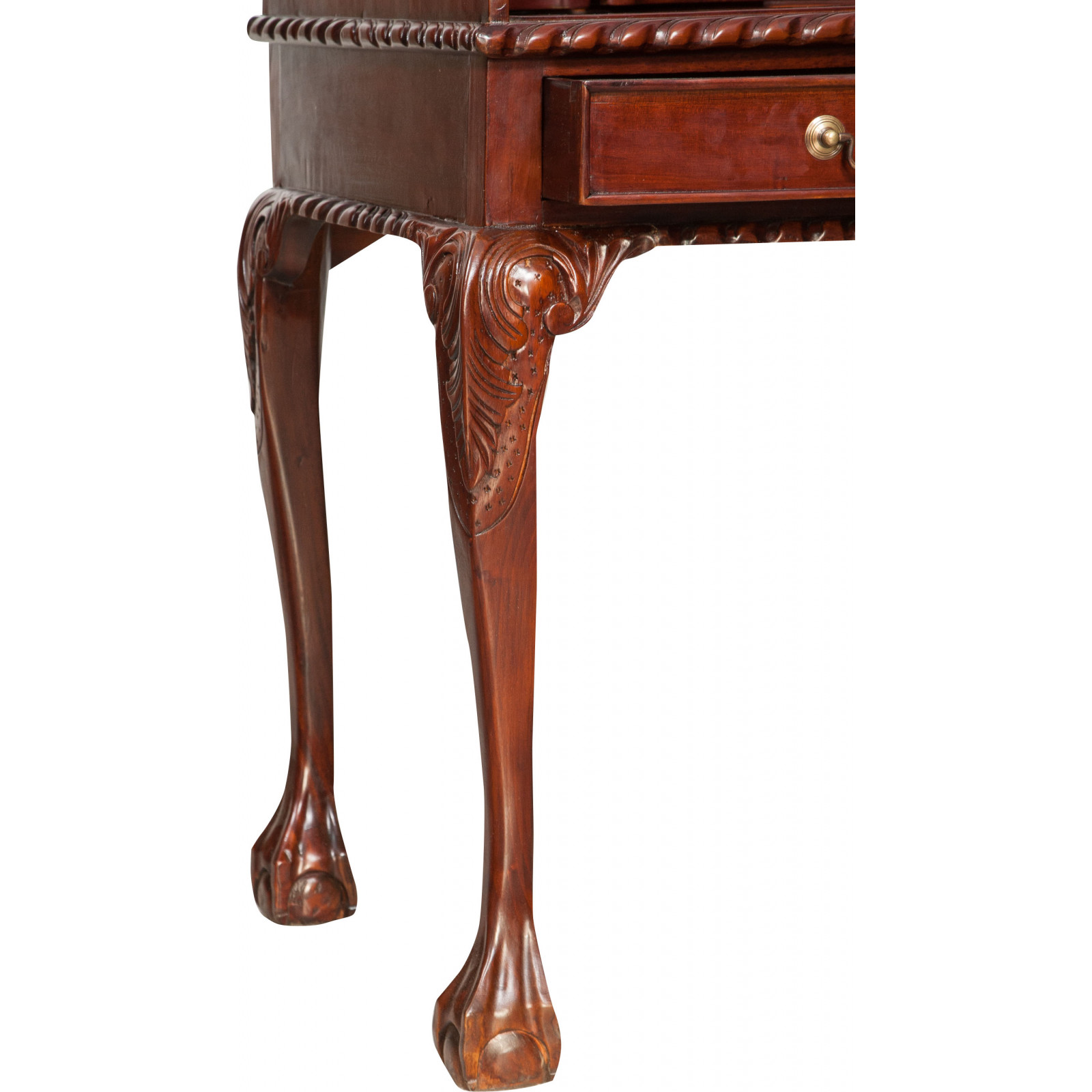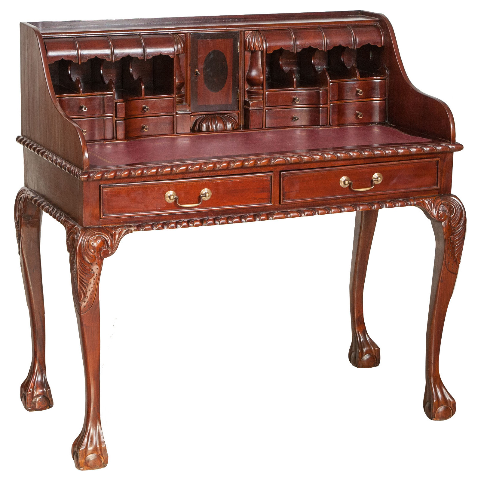 Naisen sihteeripöytä Chippendale-tyyliin 103x64x105 cm, valmistettu massiivimagonista puusta, kokonaan käsin veistetty. Siinä on kaksi käytännöllistä vetolaatikkoa, punaisella keinonahalla varustettu kirjoituskansi, jolle on asetettu korkeus, jossa on 8 laatikkoa ja seitsemän pientä ”salaa” laatikkoa. Siinä on myös suuri ”piilotettu” osasto, johon pääsee liu'uttamalla kirjoituspintaa.