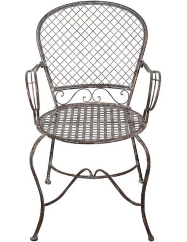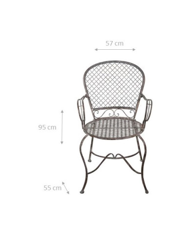 Tuoli / nojatuoli käsinojilla, pyöreä istuin 57x55x95 cm, takorautaa. Tarkka kudonta, se sopii erinomaisesti sekä ulko- että sisäympäristöön