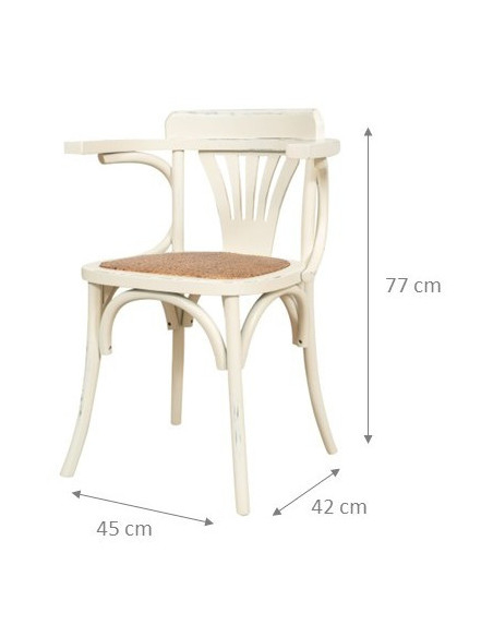 Nojatuoli Thonet-tuoli käsinojilla, massiivituhkaa, antiikkivalkoinen viimeistely ja rottinkiistuin