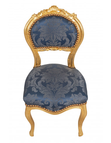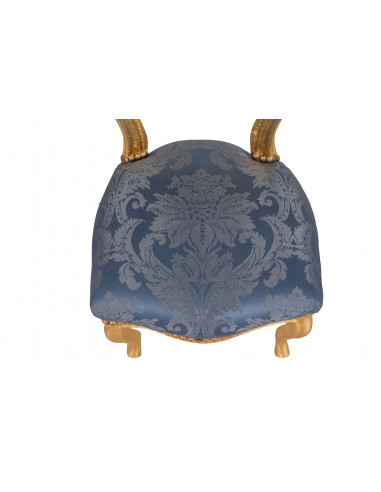 Ranskalainen Louis XVI -tyylinen nojatuoli, massiivipyökkiä, kultainen ja sininen viimeistely