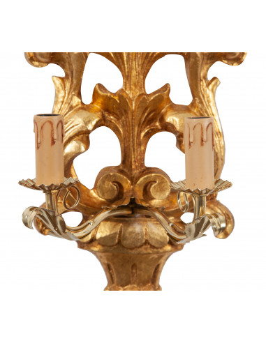 Shabby seinävalaisin puusta ja raudasta, antiikki kultalehti viimeistelty Valmistettu Italiassa