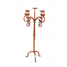 Taotusta raudasta valmistettu lattiakynttilänjalka, jossa antiikkipunainen viimeistely. Pituus 49 cm, syvyys 49 cm ja korkeus 94 cm. Kaikki mitat viittaavat tuotteen suurimpiin kokonaismittoihin.