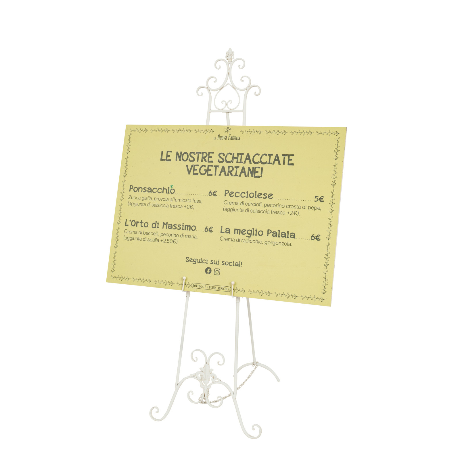 Tyylikäs, käytännöllinen ja vakaa jalusta maalausteline L53xDP96xH150 cm takorautaa. Pienimmätkin yksityiskohdat huomioiden, monipuolisuutensa ansiosta se on ihanteellinen myös ruokalistan pidikkeeksi tai näyttelyihin, näytteillepanoihin, gallerioihin.