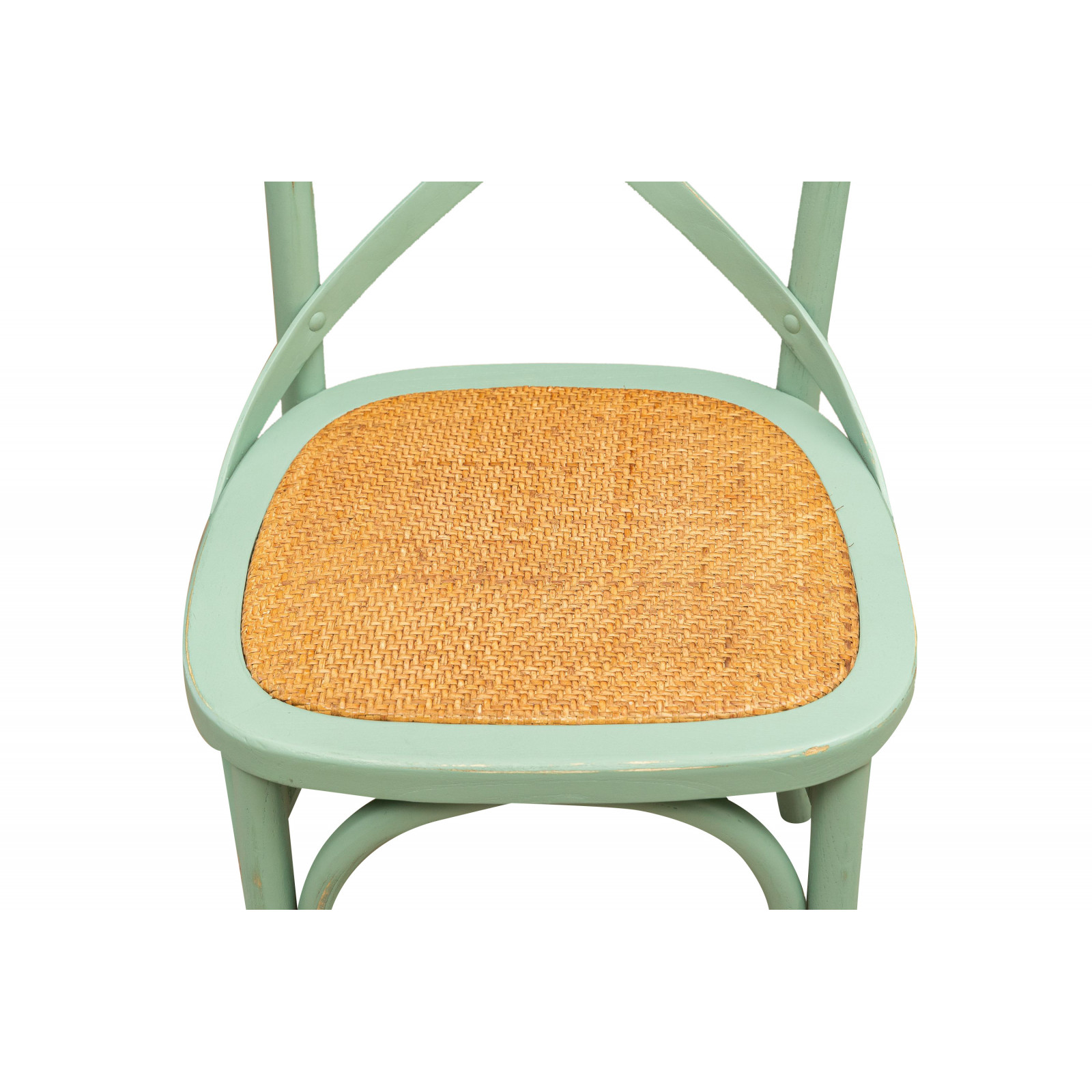 Thonet Cross -tuoli massiivipuusta ja istuin antiikkivihreällä viimeistellyllä rottingilla