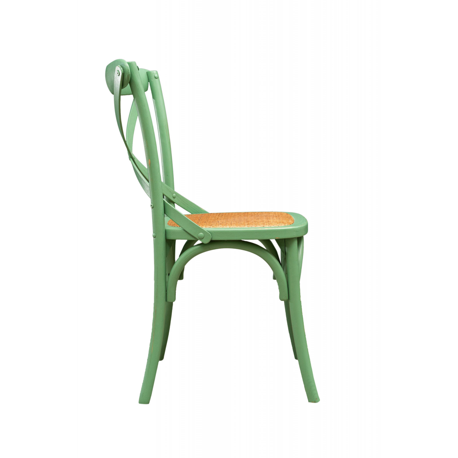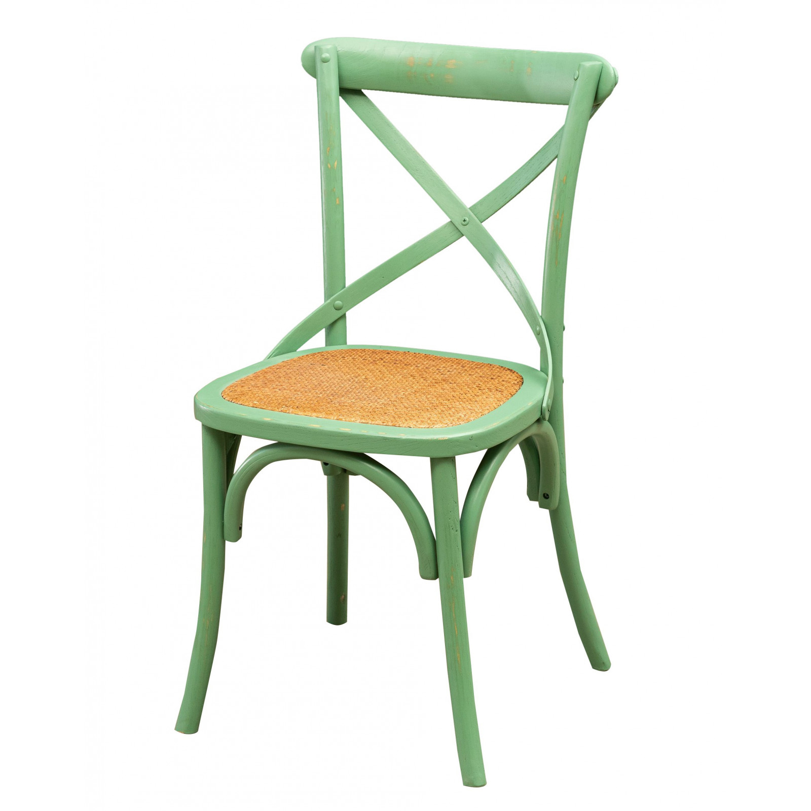 Thonet Cross -tuoli massiivipuusta ja istuin rottingista, antiikkivihreä viimeistely
