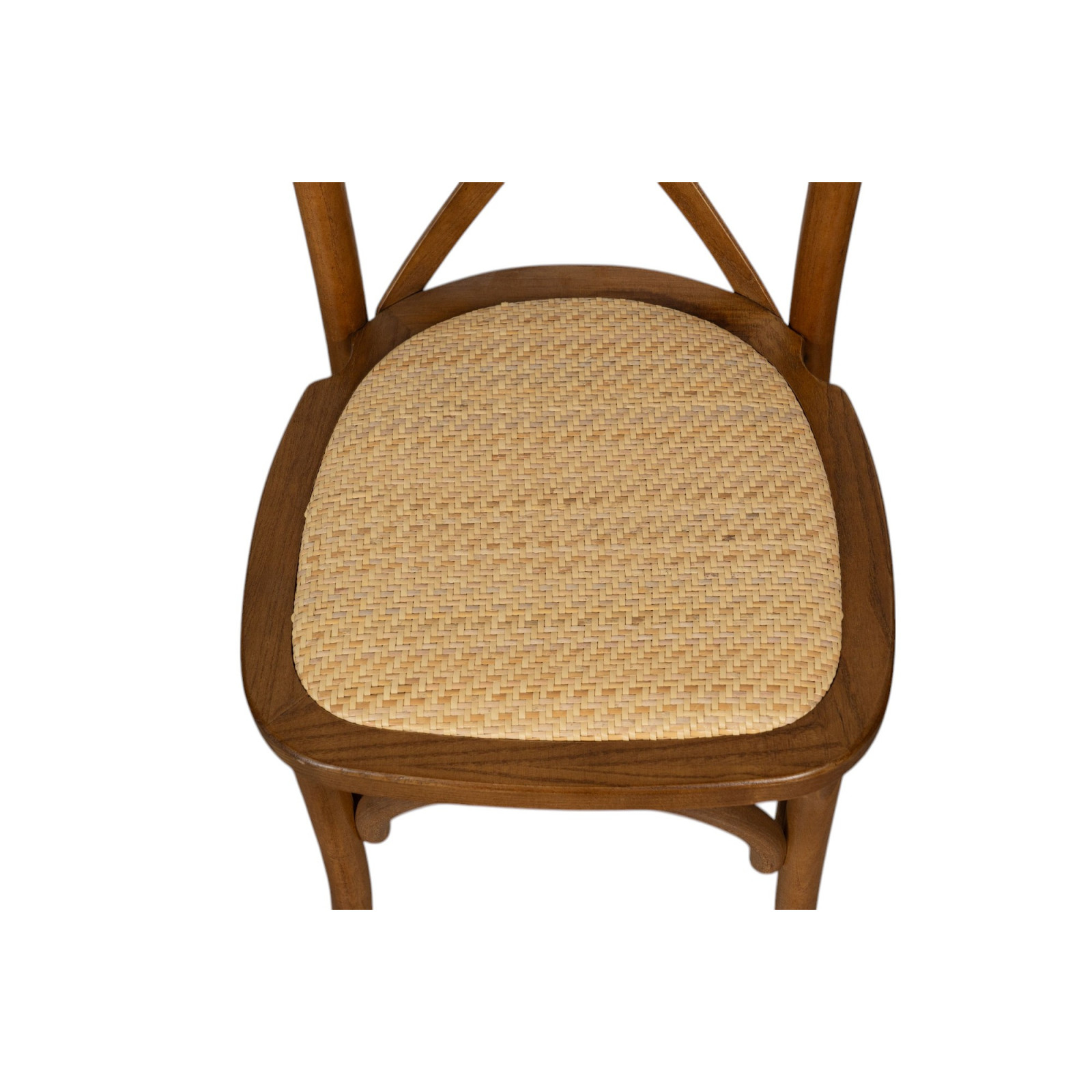 Thonet Cross -tuoli massiivipuusta ja istuin rottingista, vanhentettu puupinta, pinottava