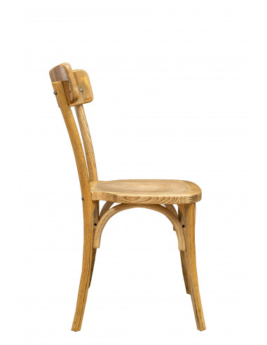 Tämä Thonet-tyylinen tuoli, jonka leveys on 48 cm, syvyys 55 cm ja korkeus 88 cm, on valmistettu massiivisaarnesta ja siinä on ristiselkänoja. Sen bistromainen muotoilu tekee siitä ihanteellisen sisustamaan minkä tahansa tilan tai tapahtumapaikan vintage-tunnelmalla mukavuudesta tinkimättä.