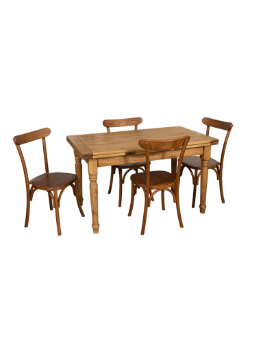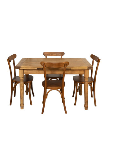 Pöytä, jossa on kaksi jatketta, jotka on valmistettu kokonaan massiivisesta kalkkipuusta käsityönä tavalla, joka voidaan yhdistää mihin tahansa maalaismaiseen sisustukseen.