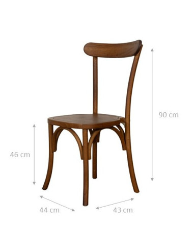 Tämä Thonet-tyylinen tuoli on 44 cm leveä, 43 cm syvä ja 90 cm korkea, ja se on valmistettu massiivisaarnesta. Sen bistrotyylinen muotoilu tekee siitä ihanteellisen sisustamaan minkä tahansa tilan tai tapahtumapaikan vintage-tunnelmalla mukavuudesta tinkimättä.