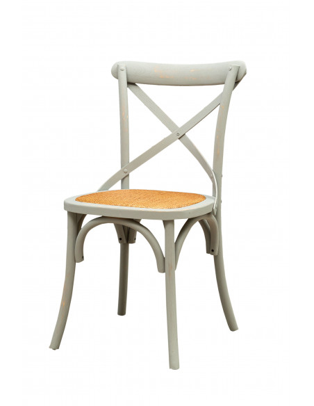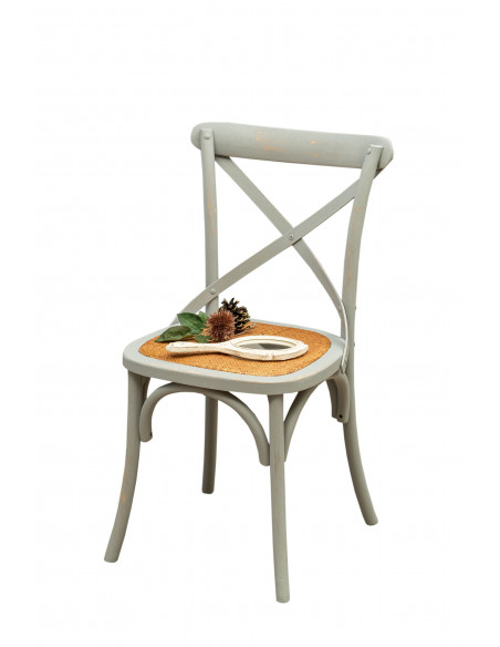 copy of Thonet-tuoli massiivipuuta ja rottinkiistuin antiikinharmaalla viimeistelyllä.