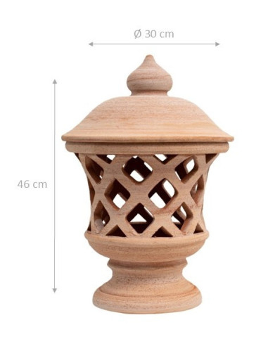 Käsintehty lyhty toskalaista savesta, halkaisija 30 cm, korkeus 46 cm. Valmistus ja polttaminen noudattavat vanhoja toskalaista perinteitä. Maaperän laatu ja polttomenetelmä tekevät lyhdystä erittäin pakkasenkestävän. Käsintehty valmistusprosessi tekee jokaisesta tuotteesta ainutlaatuisen. Maalaismaisen ja shabby-tyylisen sisustuksen ystäville sekä kaikille, jotka haluavat sisustaa kotinsa rustiikkisesti, Biscottini tarjoaa laajan valikoiman sisä- ja ulkokalusteita, jotka ovat välttämättömiä kaikenlaisten tilojen ja huoneiden sisustamiseen.