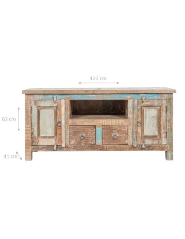 TV-kaappi massiivisesta kierrätyspuusta, antiikkipintainen