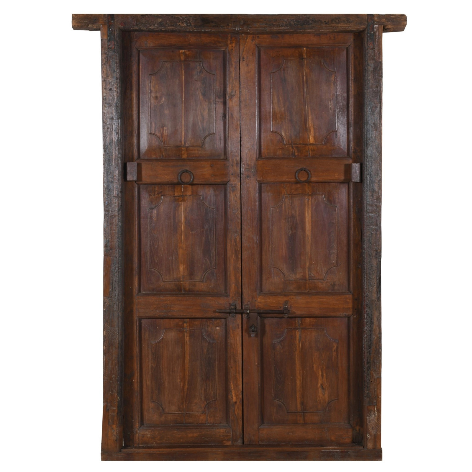 Vanha tiikkipuinen ovi/portti, jonka mitat ovat pituus 160 cm, syvyys 10 cm, korkeus 214 cm. Tämä ovi on peräisin vanhojen ja merkittävien rakennusten purkamisesta ja kunnostamisesta. Hienosti kunnostettu ja myös ulkokäyttöön sopivaksi käsitelty ovi on aito ja ainutlaatuinen antiikkiesine. Kaikki mitat viittaavat tuotteen suurimpiin mittoihin.