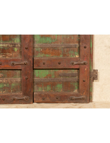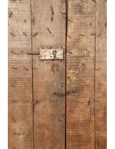 Porte coulissante médiévale ancienne en bois massif et en fer pour l'intérieur ou l'extérieur
