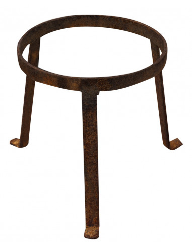Ancienne amphore avec anses en terre cuite et base de vase en fer
