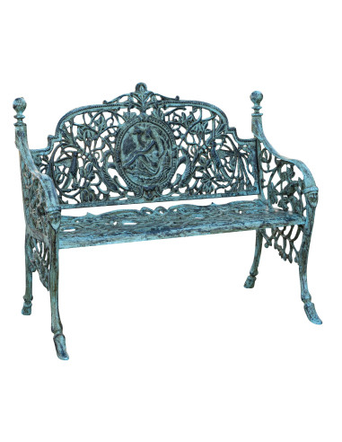 Banc en fonte très robuste, stable et lourd, mesurant 105 cm de largeur, 62 cm de profondeur et 90 cm de hauteur, avec une finition soignée, entièrement réalisée à la main, permettant d'obtenir un véritable effet antique. Méticuleusement fabriqué, il reproduit le design des anciens bancs anglais et français des années 1800. Il meuble élégamment tout environnement intérieur ou extérieur. Toutes les mesures se rapportent aux dimensions maximales de l'article.