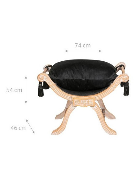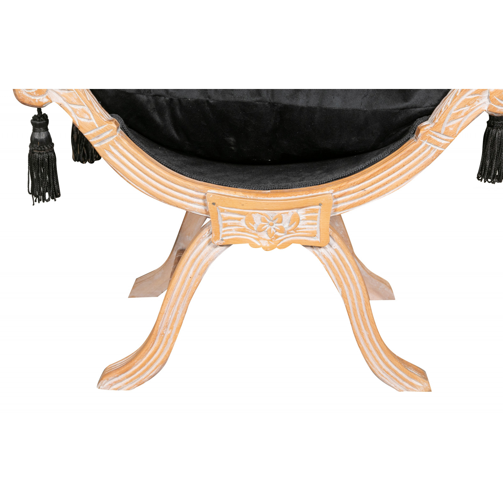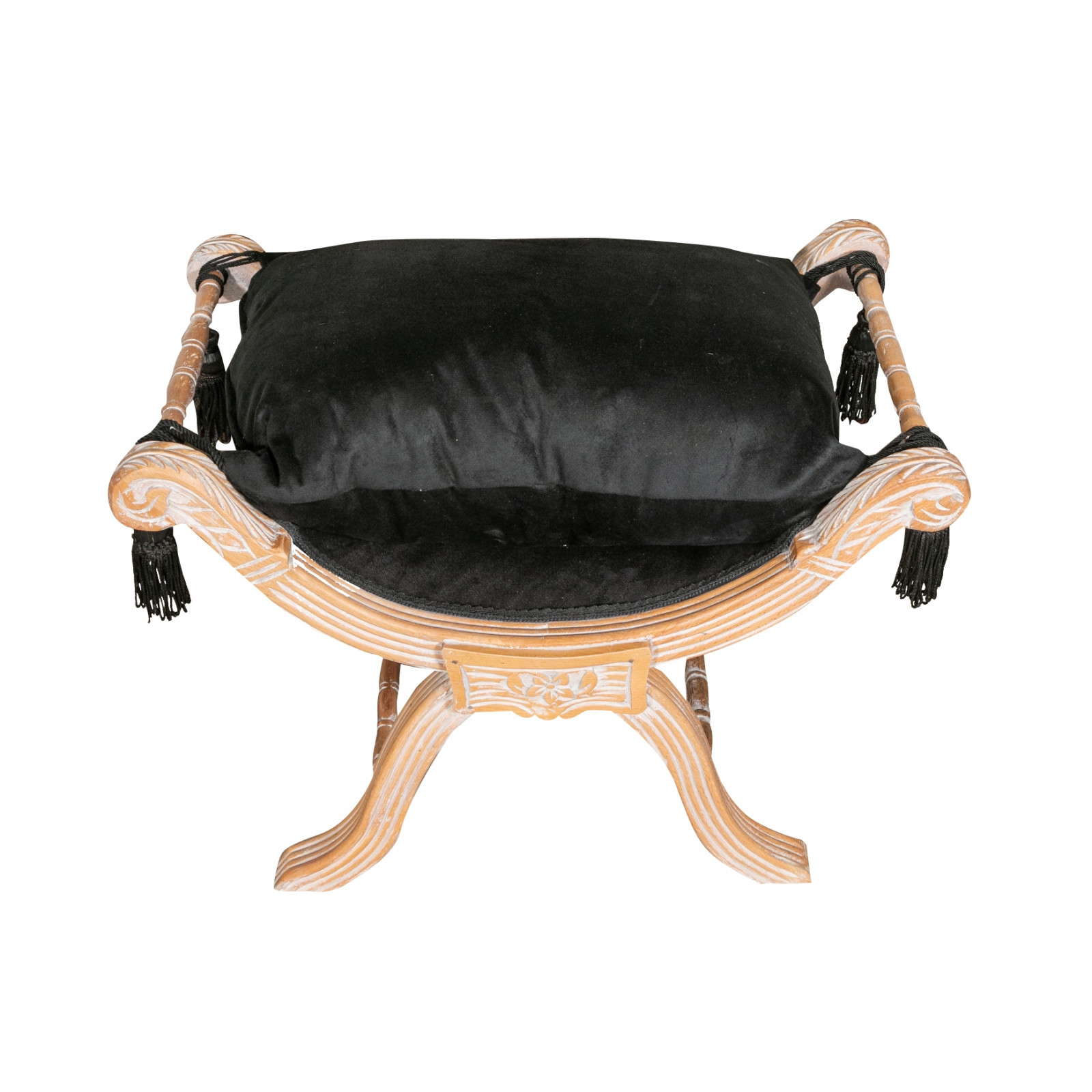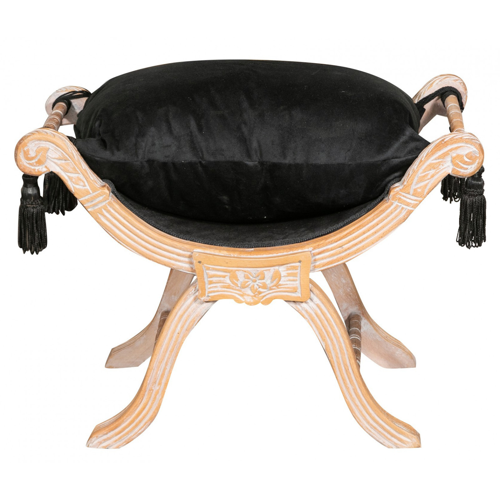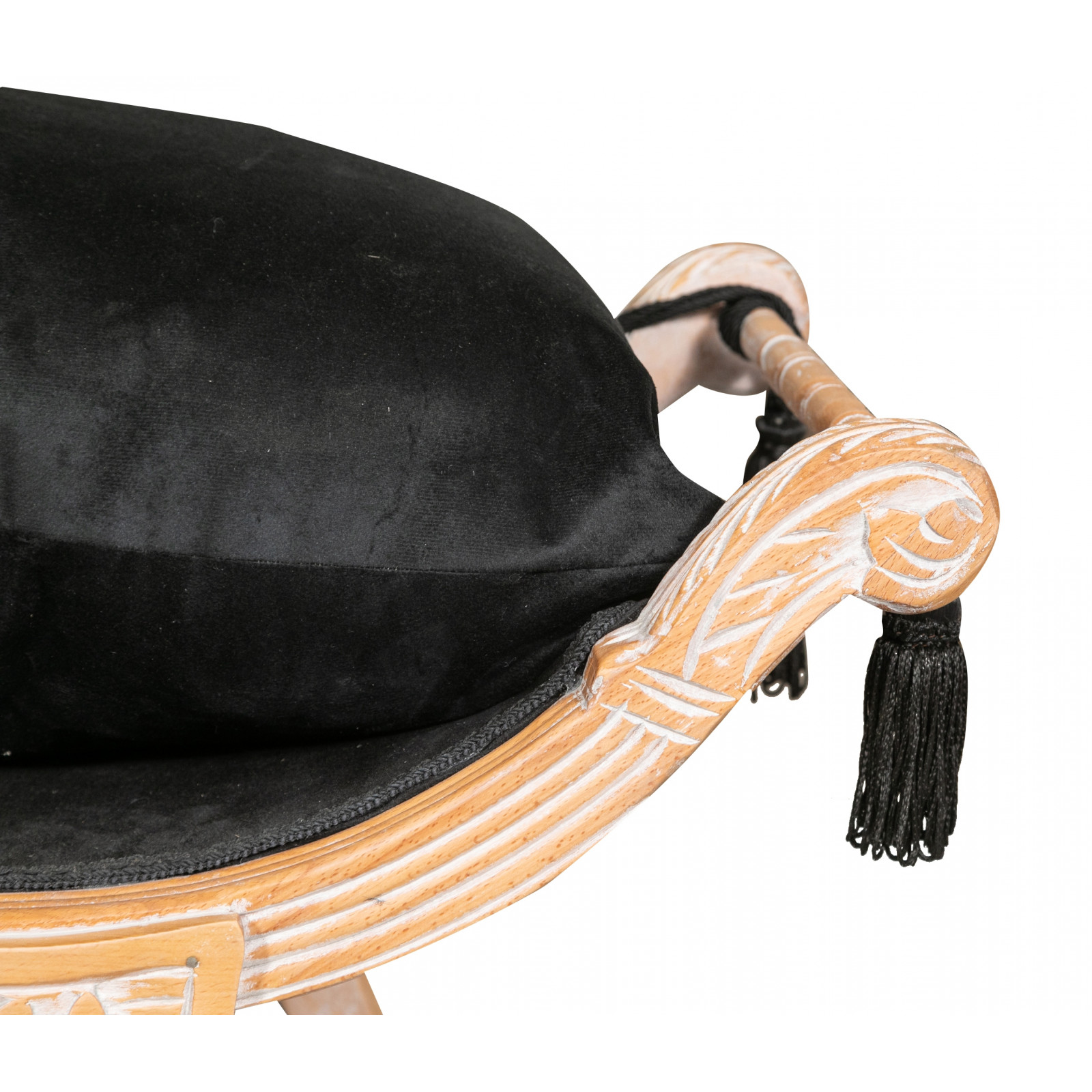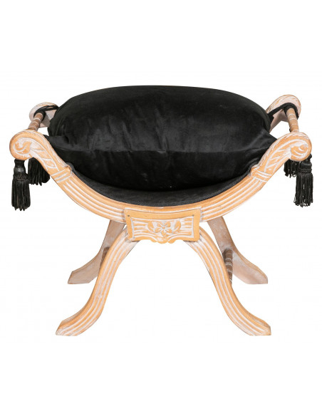 Tabouret faldistoire Louis XVI de style français, en hêtre massif, sculpté et fini à la main avec patine en bois blanchi