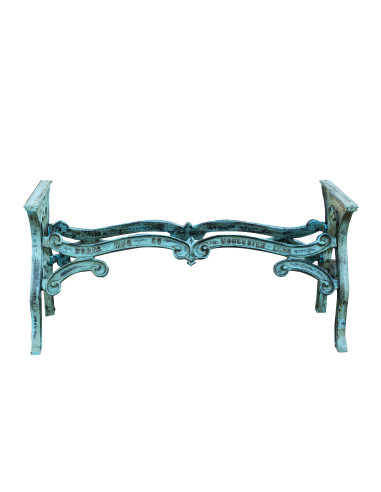 La base en fonte, une structure porteuse de taille considérable, peut supporter des plateaux en pierre et en marbre de grande taille, voire très lourds. La base est une copie fidèle d'un établi d'une verrerie anglaise, fermée en 1860.
