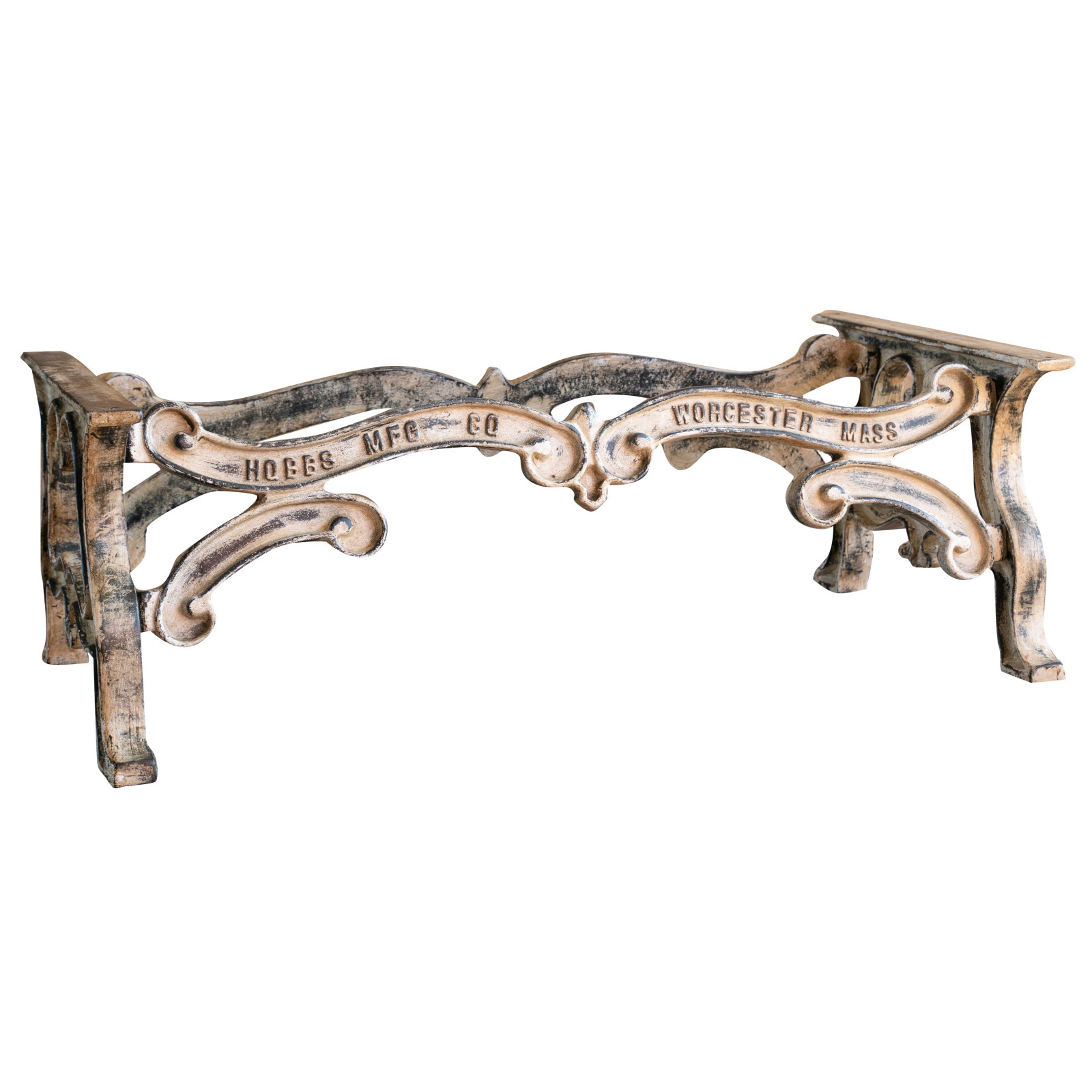 Base de table en fonte très stable, robuste et lourde, de dimensions 127 cm de largeur, 69 cm de profondeur et 43 cm de hauteur, entièrement réalisée à la main, avec une finition soignée, permettant d'obtenir un véritable effet antique.