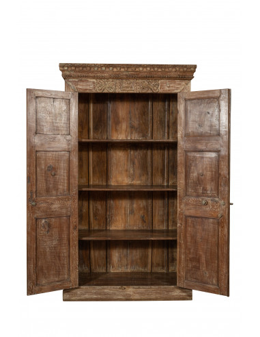 Armoire très solide et spacieuse avec des dimensions de largeur 130 cm, profondeur 51 cm, hauteur 223 cm, multifonctionnelle, grâce aux étagères internes, et de grand impact esthétique. Ce meuble est fabriqué en prenant une porte ancienne et en construisant la bibliothèque en bois massif sur mesure.
