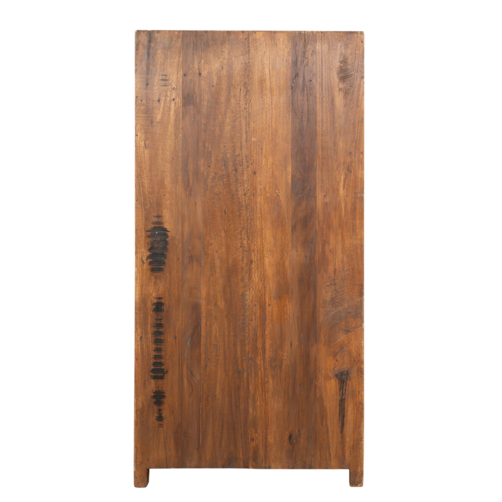 Bibliothèque en bois massif recyclé, dimensions : largeur 90 cm, profondeur 30 cm, hauteur 180 cm. Peinte à la main avec des vernis naturels, ses multiples nuances rendent chaque meuble unique. Solide et fonctionnelle, elle est idéale pour les amateurs de meubles anciens et de bois.