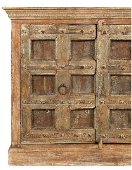 Buffet en bois massif recyclé, finition vieillie L224xP51xH90 cm