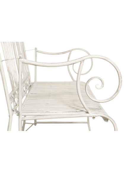Bancs-canapés en fer de 113 cm de largeur, 58 cm de profondeur et 94 cm de hauteur, finition blanc vieilli. Avec son style provençal, il meuble avec une élégance fonctionnelle n'importe quel environnement, tant intérieur qu'extérieur.