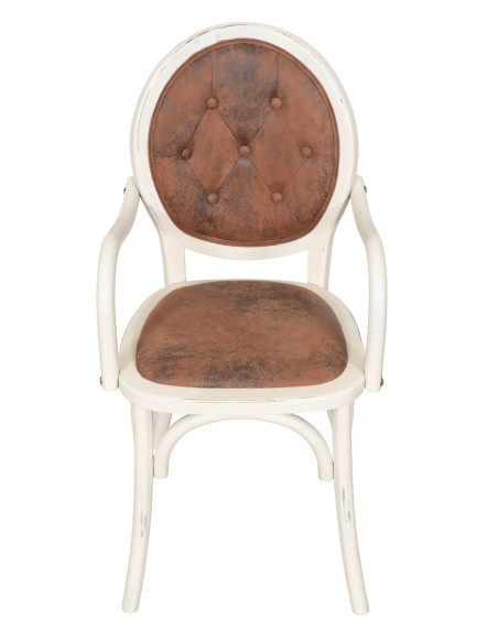 Chaise avec accoudoirs en bois massif et assise rembourrée finition blanc antique