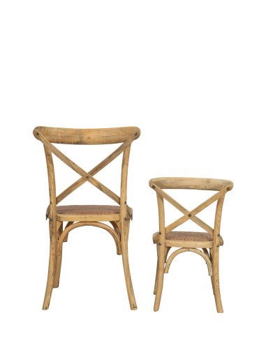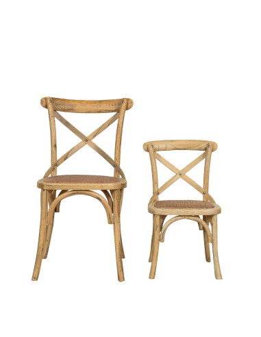 Chaise bébé de 36 cm de largeur, 42 cm de profondeur et 65 cm de hauteur de style Thonet en frêne massif avec dossier croisé et assise en fibre de rotin tressée. Grâce à son design bistrot, elle est idéale pour meubler n'importe quelle pièce ou lieu dans un style vintage, sans renoncer au confort.