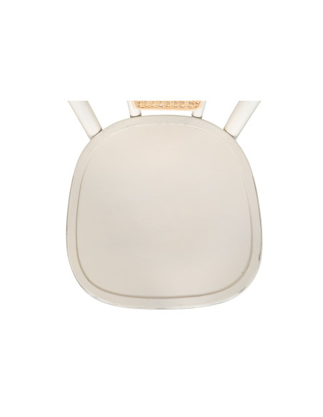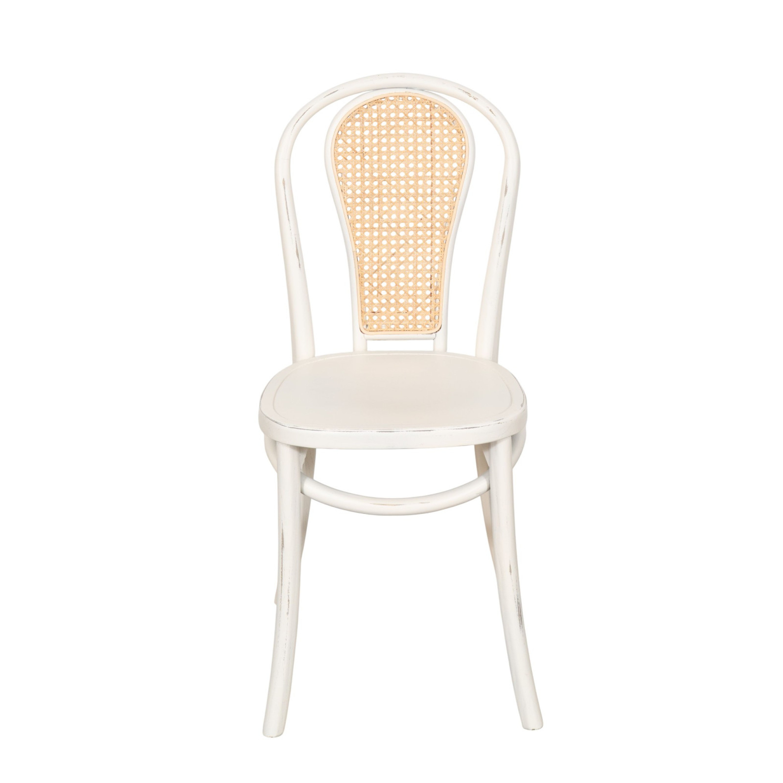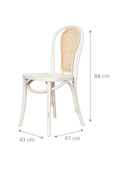 Chaise en bois massif et dossier en paille de Vienne, finition blanche vieillie