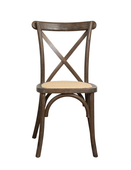 Chaise Thonet Cross en bois massif et assise en rotin finition marron vieilli empilable