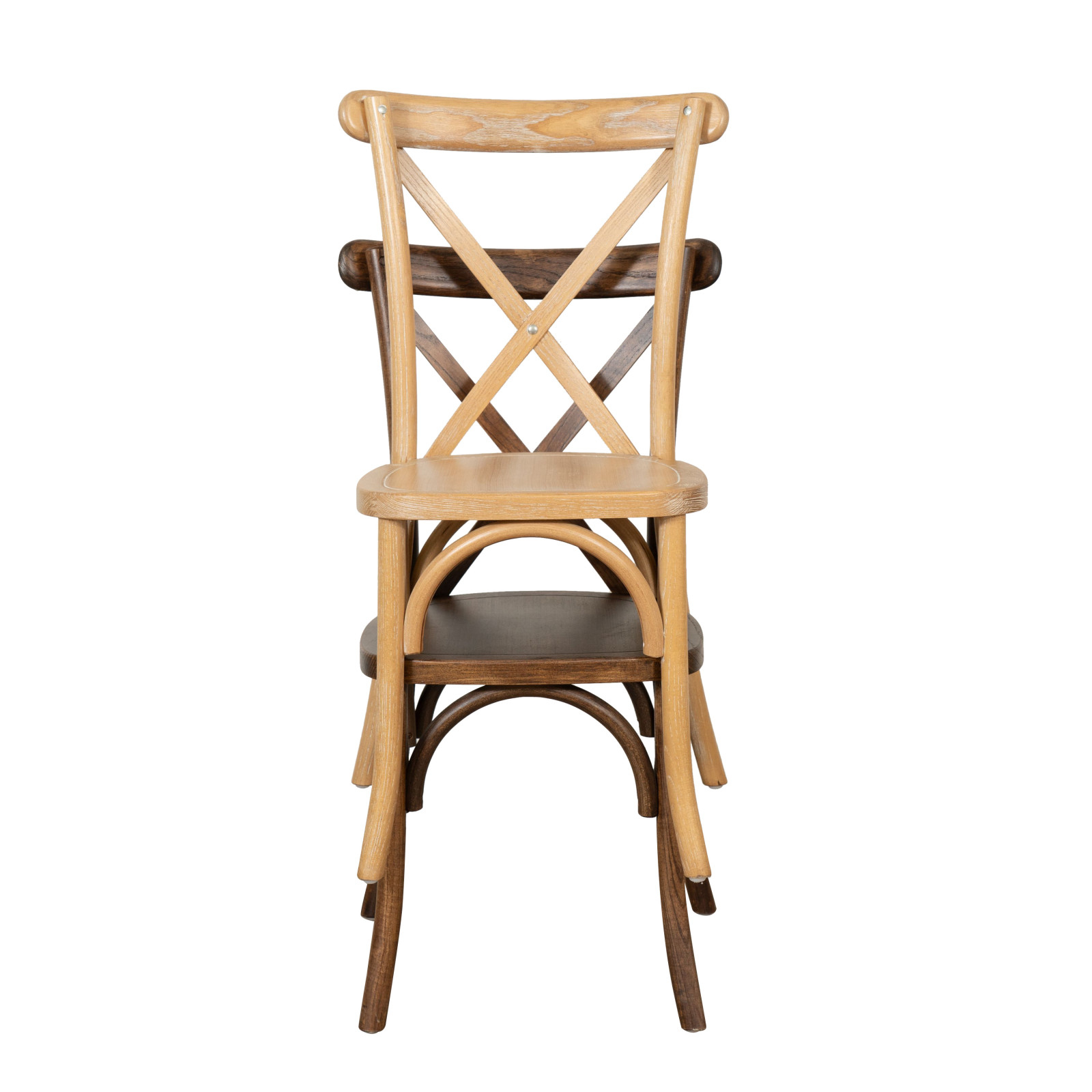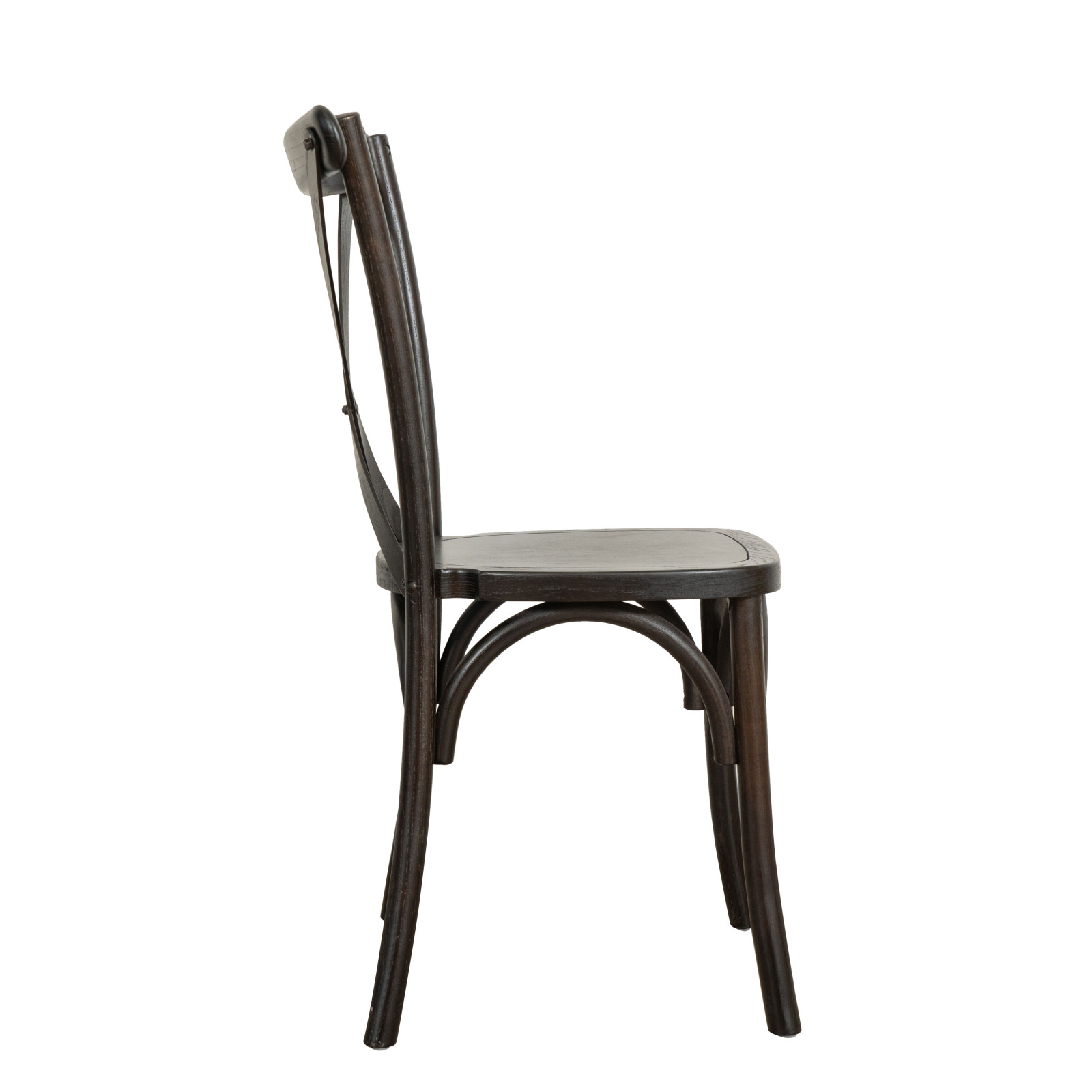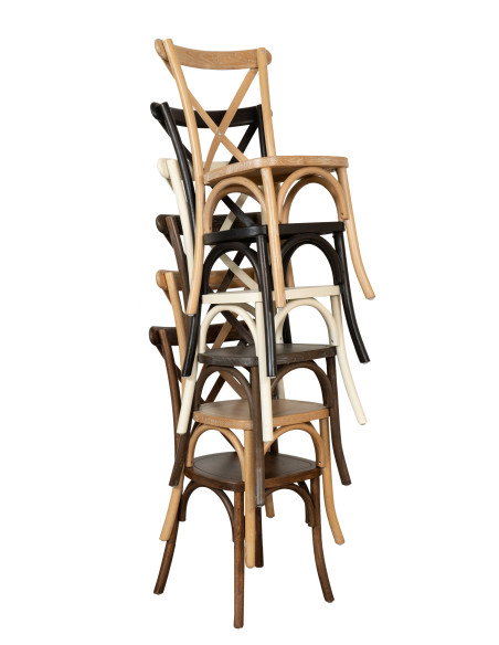 Chaise Thonet Cross en chêne massif, assise en bois, finition marron, empilable