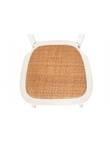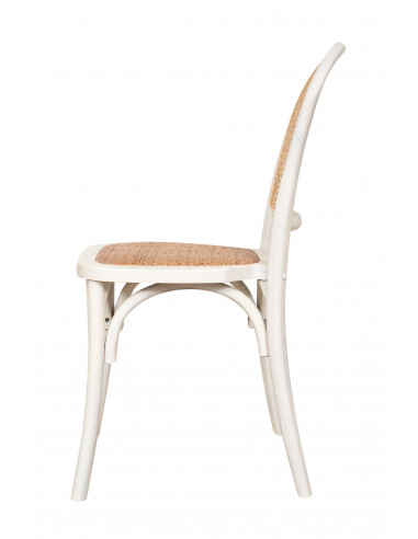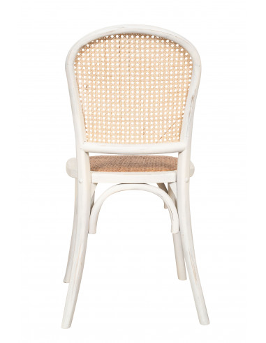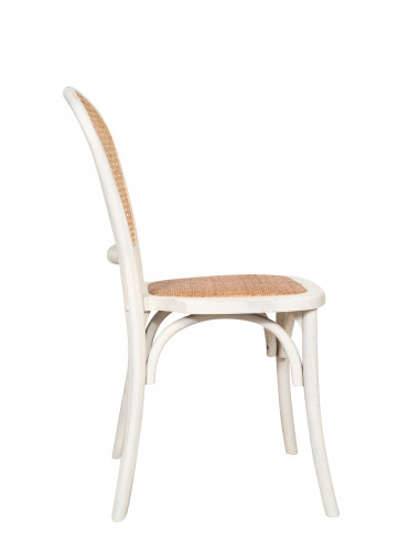 Chaise Thonet en frêne massif et assise en rotin finition blanc antique
