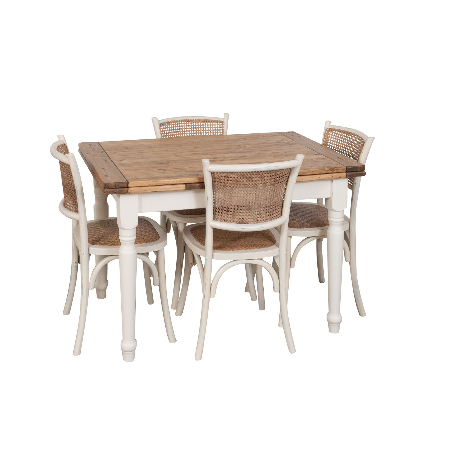 Chaise Thonet en frêne massif et assise en rotin finition blanc antique