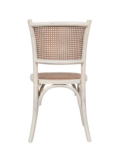 Chaise Thonet en frêne massif et assise en rotin finition blanc antique