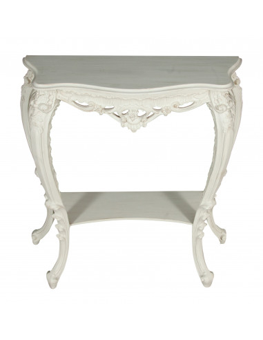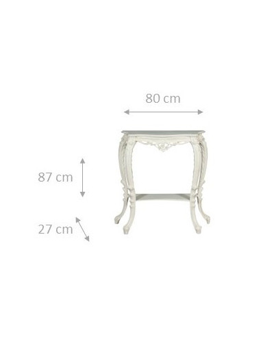 | Console en bois, finition blanc antique. Dimensions: 80 cm de long, 27 cm de profondeur, 87 cm de hauteur. Soigneusement travaillé et fini par de vieux artisans florentins. Idéal pour enrichir et décorer n'importe quel environnement. Article entièrement fabriqué en Italie. |
